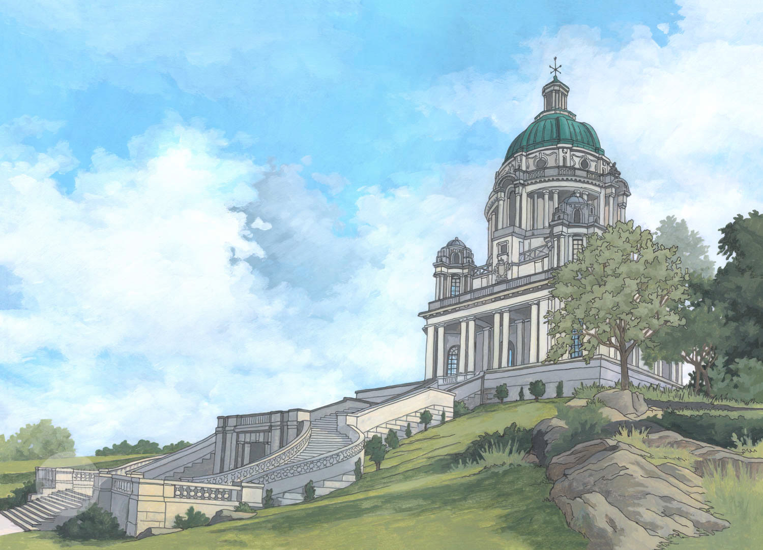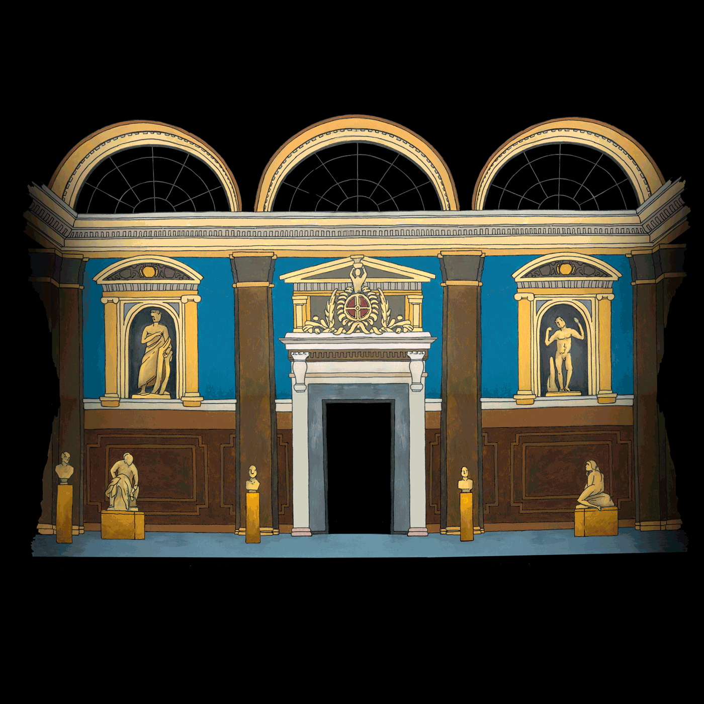 Materials: Scanned original paintings with acrylic paint and Mitsubishi pens, photoshop for editing and composition.