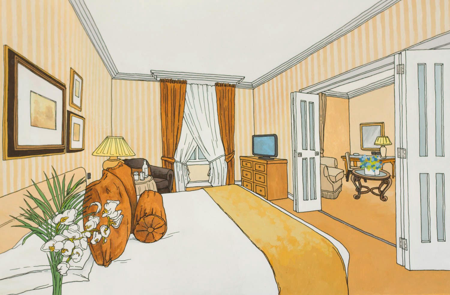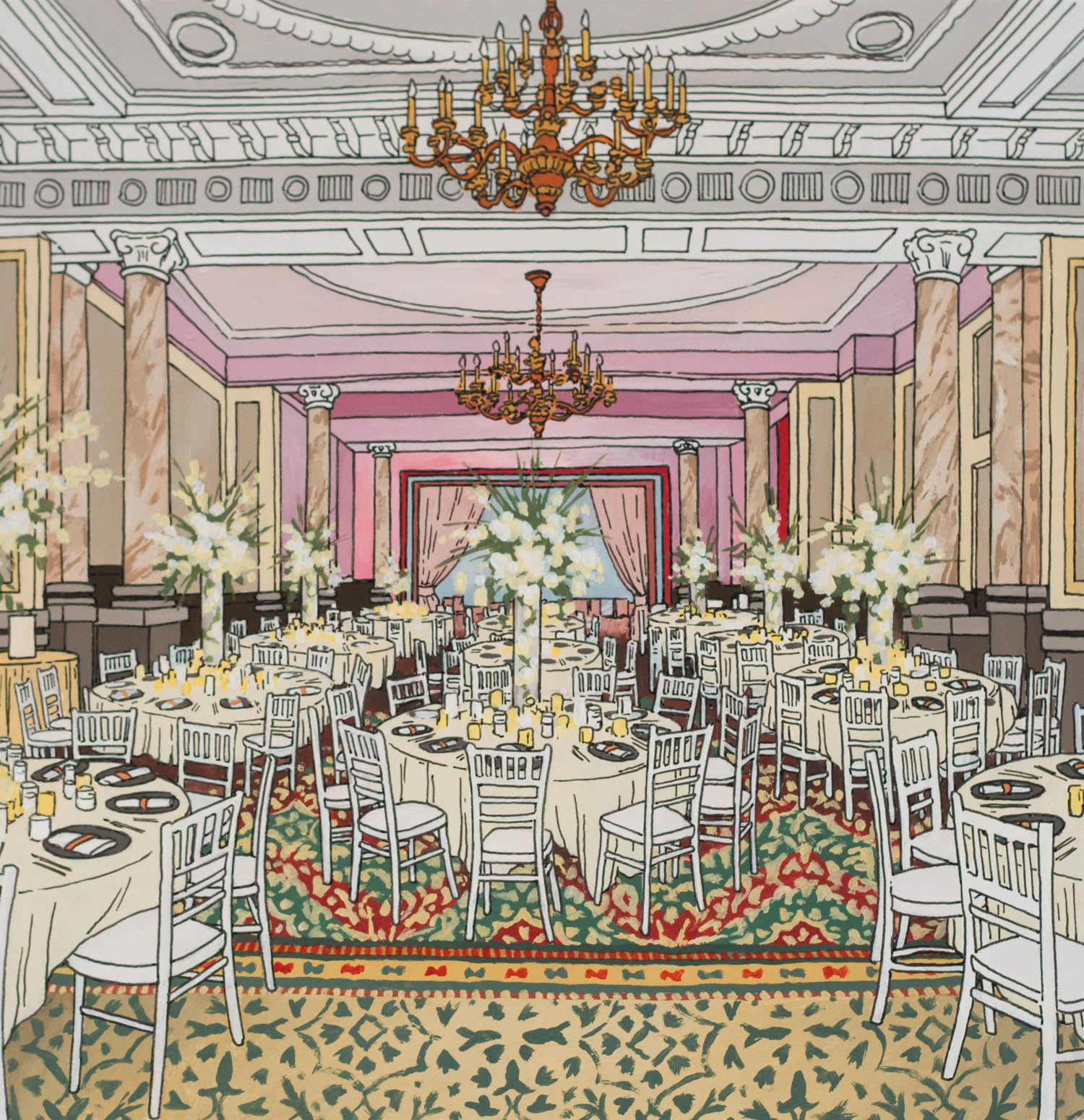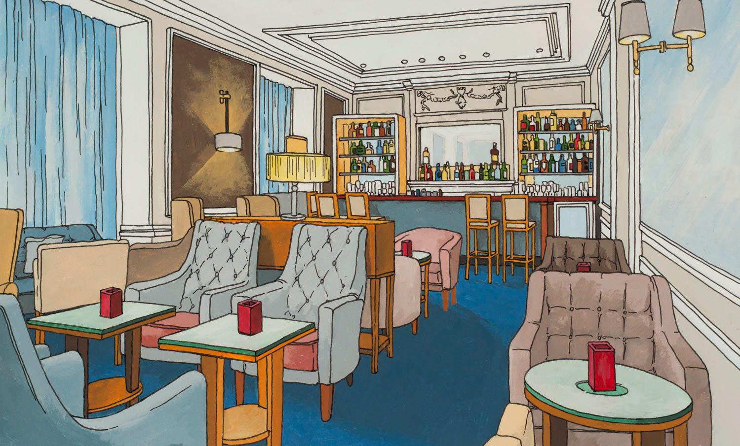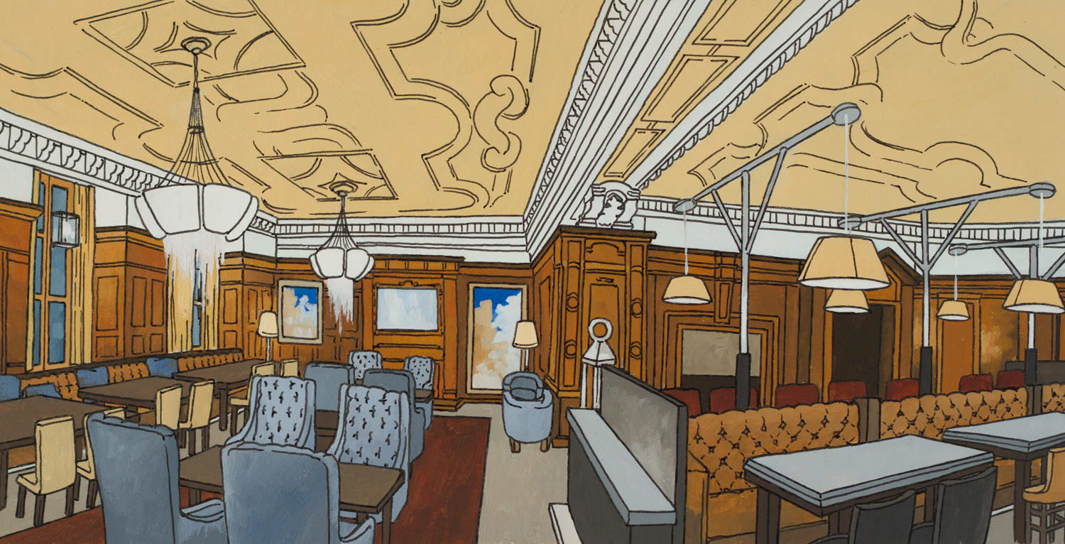 Illustrations created for the Landmark London. Images feature the exterior details as well as several interiors distinctive to the hotel. Reproduced onto a tin tea caddy for their 'Winter Garden Blend'.